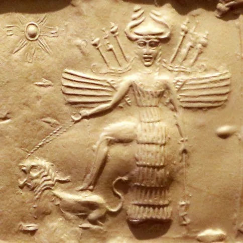 Inanna is a Sumerian goddess. One of the earliest deities and one of the seven divine powers that became the basis for Gods and Goddesses in many ancient civilizations. She was behind the deities known as Ishtar, Sauska, Astarte, Aphrodite, Venus, as well as many other names. Her names were as numerous as the paradoxes she was a symbol for, such as being a goddess of love as much as she was a goddess of war. At times impulsive and at other times calculating, people worshiped her because of the contradictions within her that they could relate to. In her struggle to mature and grow, she showed how feminine energy can create, love, destroy, and enact justice. Just as Inanna couldn’t be confined to a single trait, identity, or label, those that followed her couldn’t either. Her priest/priestesses were independent, often non-binary, and always striving to obtain more than what they were given in life.